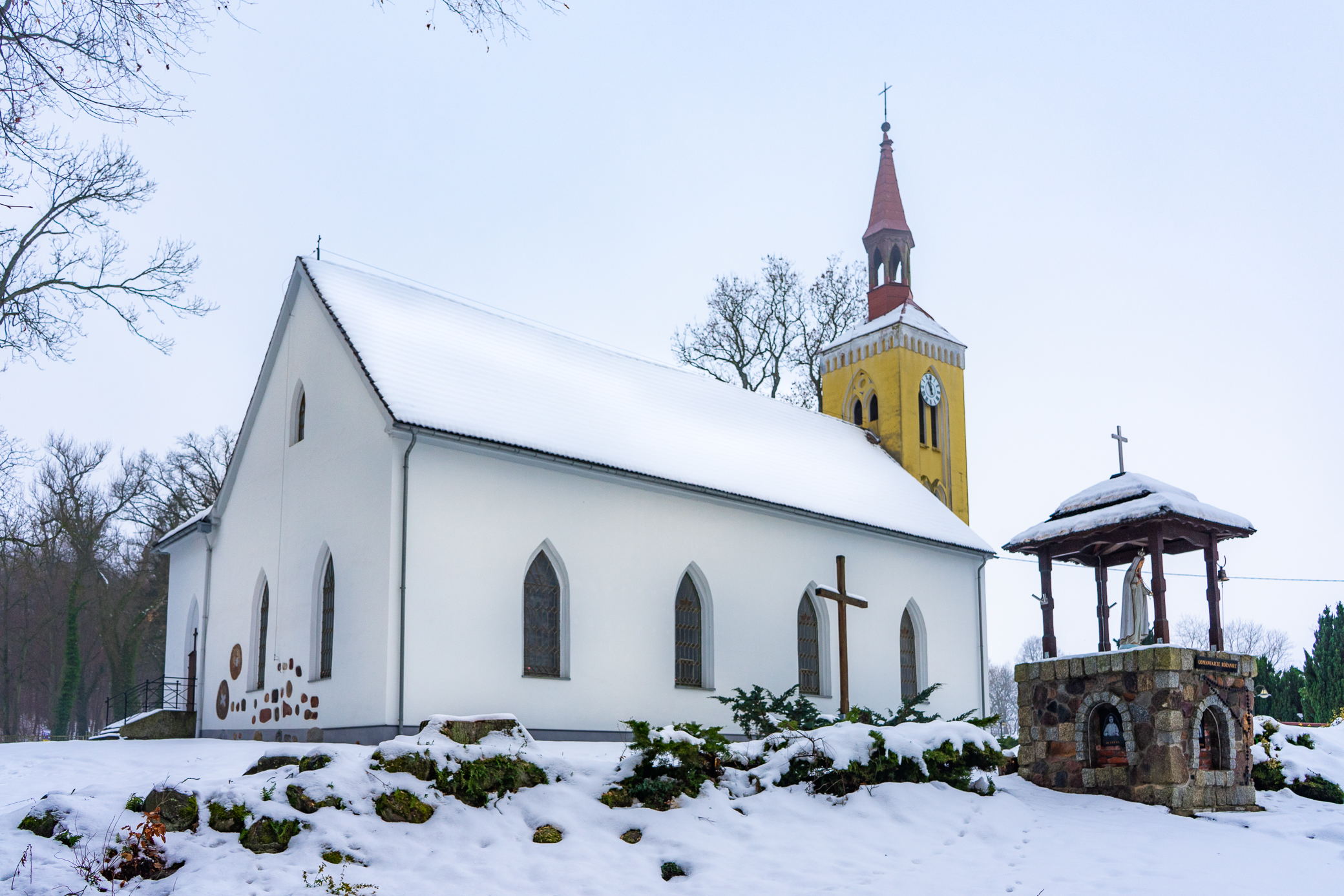 Built in the heart of the village on the site of an older temple, this brick church on a stone base is the only place of worship in the area from the 19 th century. The chancel faces east and on the west side, there is a three-storey steeple with a conical tented roof, topped with an orb and a cross.